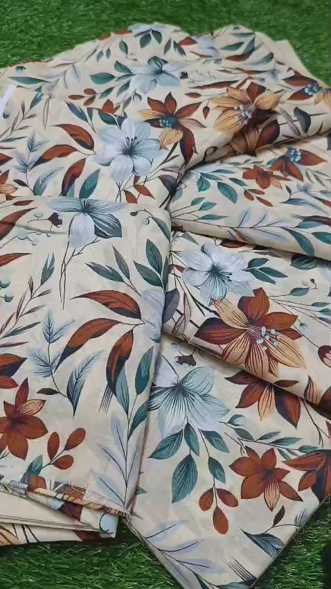 3pc: printed shirt +plain trouser+ voil lawn dopatta