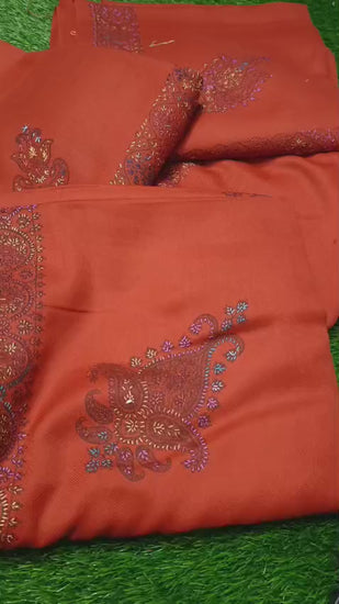 3pc:allover plain shirt trouser +fully emb cashmere shawl