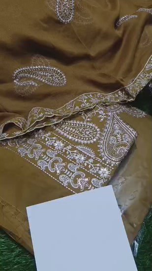3pc:emb shirt plain trouser +shifoon emb ready to wear dopatta