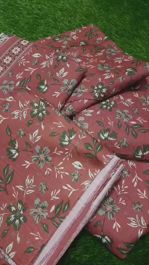 3pc:printed shirt  printed  trouser +khaddar dopatta