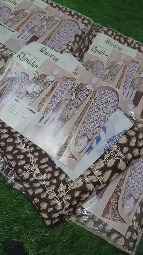 3pc:emb shirt printed trouser +khaddar printed dopatta