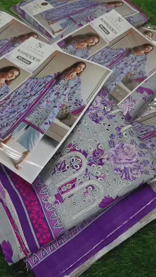 3pc:emb shirt printed trouser +khaddar printed dopatta
