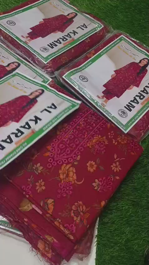 3pc:emb shirt printed trouser +dhanak printed dopatta