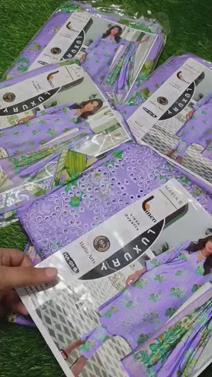 3pc:emb shirt  printed trouser +linen printed dopatta
