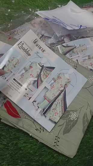 3pc:emb shirt  printed trouser +khaddar printed dopatta