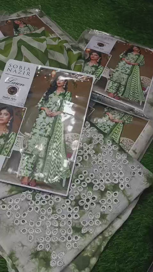 3pc:Emb chicken kari shirt printed trouser +shifoon printed dopatta