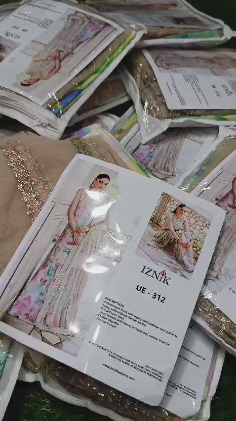 3pc:emb sequence shirt printed trouser +net emb ready to wear dopatta