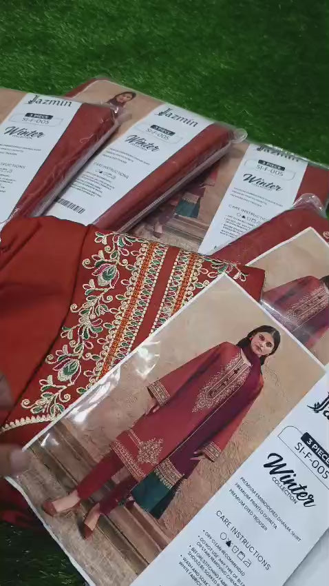 3pc: Emb shirt + plain trouser + printed wool shawl