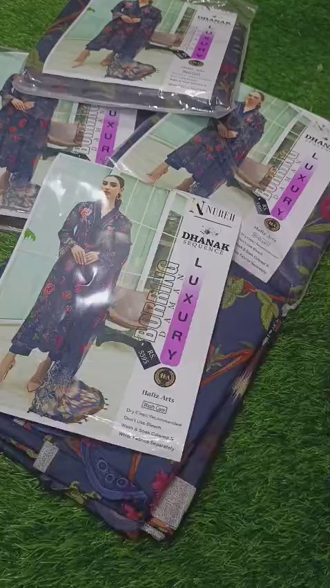 3pc:Emb chicken Kari shirt plain trouser +dhanak printed dopatta