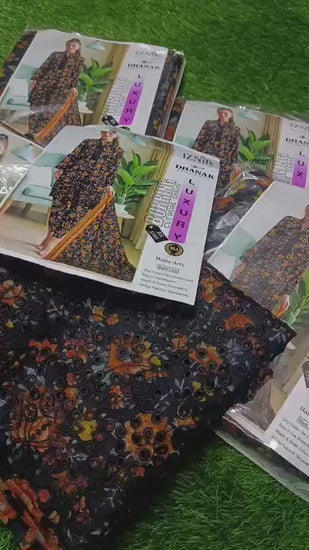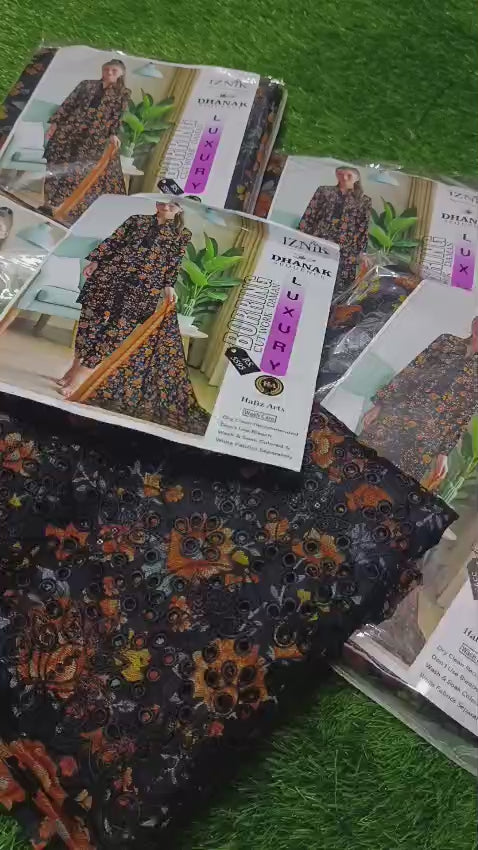 3pc:Emb chicken Kari shirt plain trouser +dhanak printed dopatta