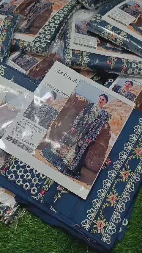 3pc:emb chicken Kari shirt with patches plain trouser +shifoon emb dopatta
