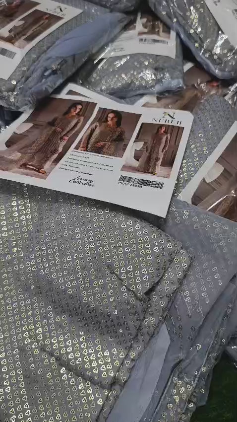 EMBROIDED SEQUENCE SHIRT WITH TWO BUNCHES + PLAIN SILK TROUSER + ORGANZA EMBROIDED SEQUECE DUPATTA