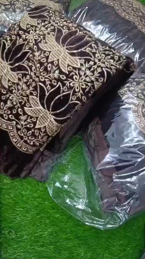 3pc : Emb sequence shirt and velvet trouser with velvet dopatta